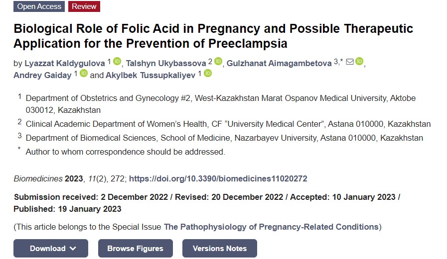[1] கல்டிகுலோவா எல், யுகிபாசோவா டி, ஐமகம்பேடோவா ஜி, மற்றும் பலர். கர்ப்பம் மற்றும் சாத்தியமான சிகிச்சையில் ஃபோலிக் அமிலத்தின் உயிரியல் பங்கு ப்ரீக்ளாம்ப்சியாவைத் தடுப்பதற்கான விண்ணப்பம். பயோமெடிசின்கள், 2023, 11(2): 272.https://doi.org/10.3390/biomedicines11020272