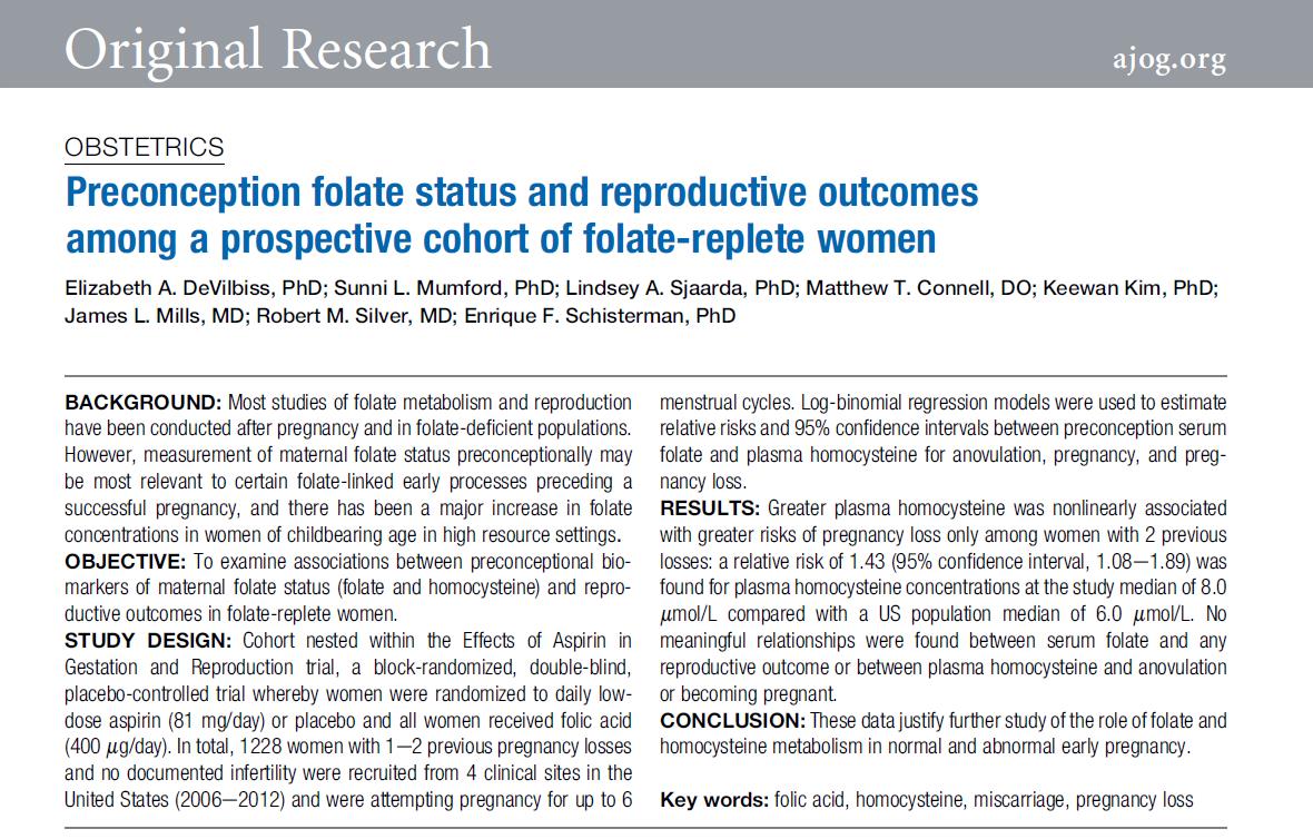 இந்த முடிவுகள் போதுமான ஃபோலிக் அமிலத்தை உட்கொண்டால்,கர்ப்பத்தின் முடிவுகள் சார்ந்துள்ளது ஃபோலேட் வளர்சிதை மாற்ற திறன் மீது, சீரம் அளவு மட்டும் அல்ல.