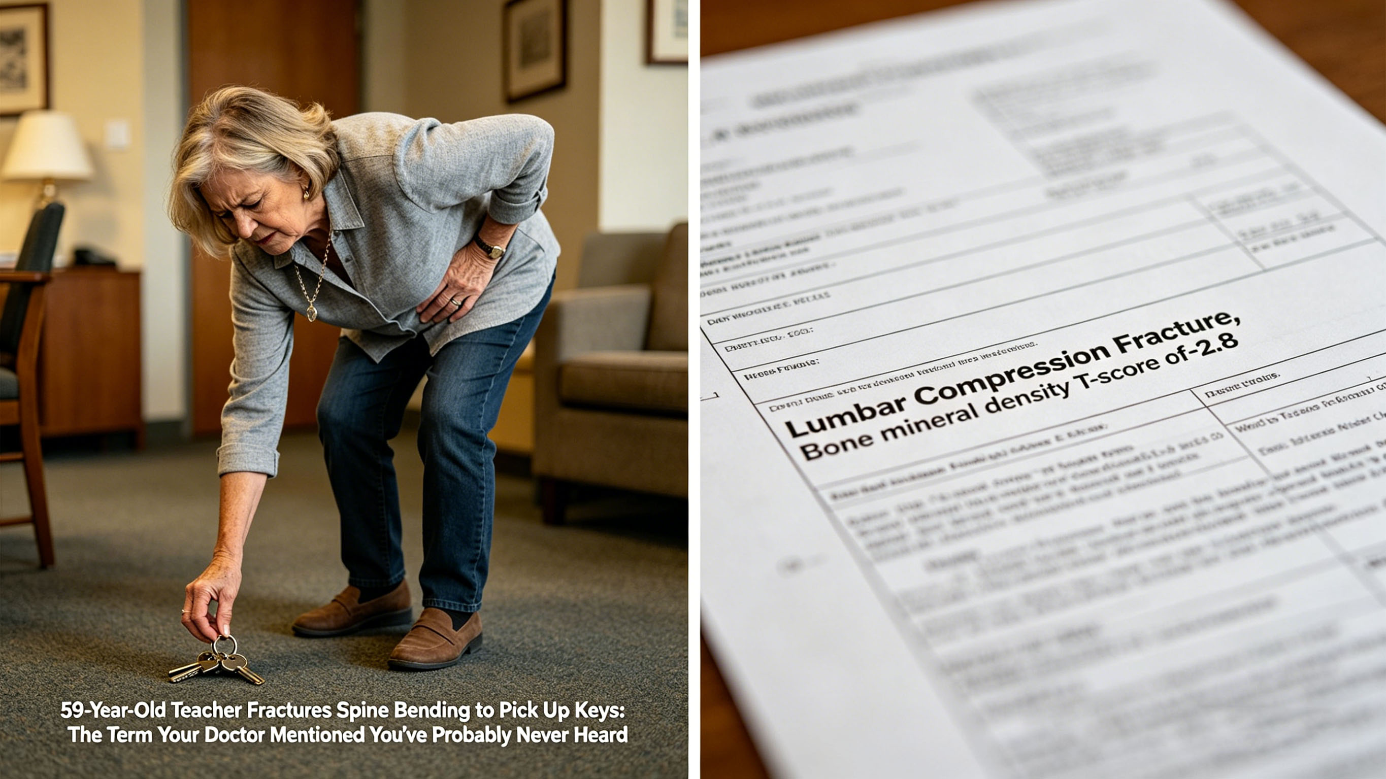 கடந்த ஆண்டு ஒரு குளிர்ந்த குளிர்கால நாளில், அவள் ஒரு சாவியை எடுக்க கீழே குனிந்தாள். அவள் எழுந்து நிற்கையில், அவளது கீழ் முதுகில் கடுமையான வலி ஏற்பட்டது. ஒரு மருத்துவமனையின் எக்ஸ்ரே ஒரு இடுப்பு சுருக்க முறிவை வெளிப்படுத்தியது, எலும்பு தாது அடர்த்தி -2.8 டி-ஸ்கோர்.